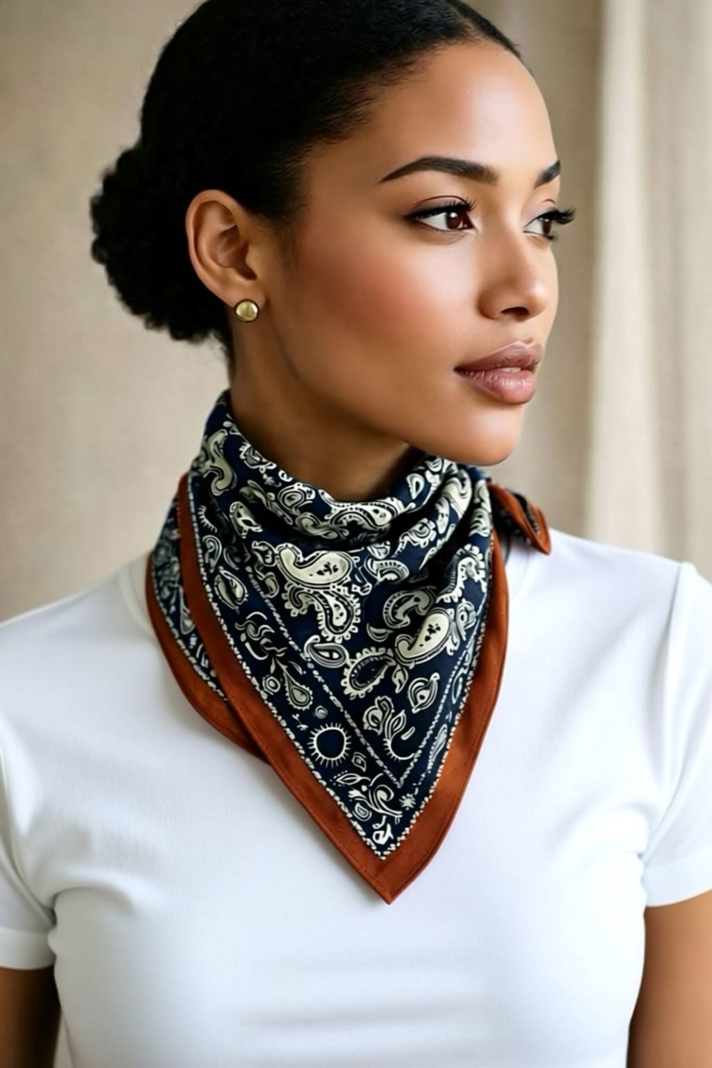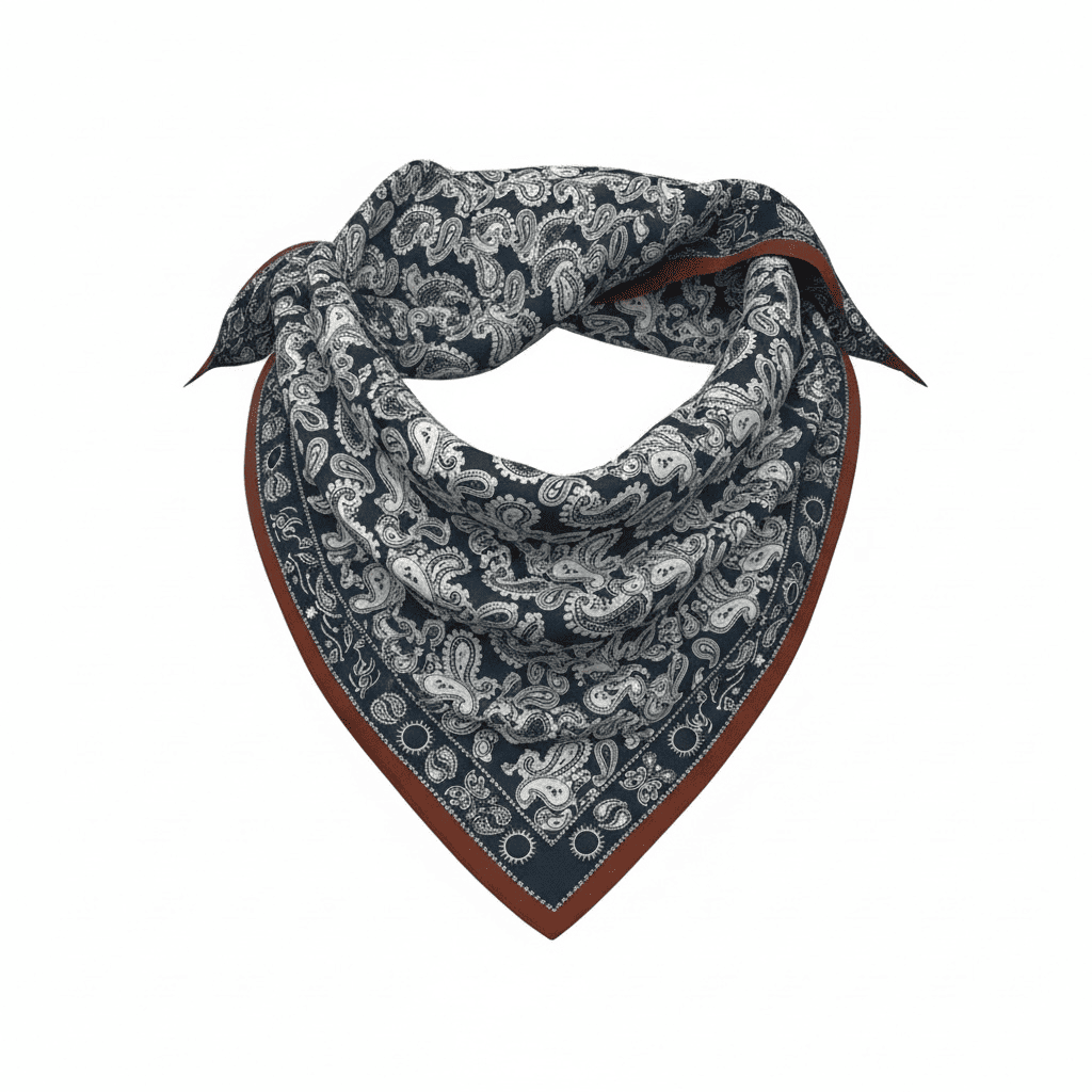 Bandana estampada con el fondo azul marino. Estampado muy versátil.