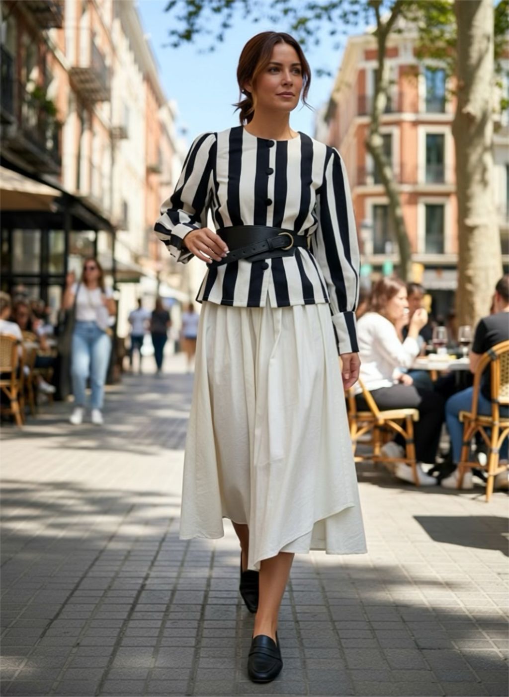• Medidas: Contorno cintura: 68 cm, estirada 92 cm. Contorno cadera: 126 cm. Largo: la parte más larga asimétrica: 93 cm, atrás: 85 cm.